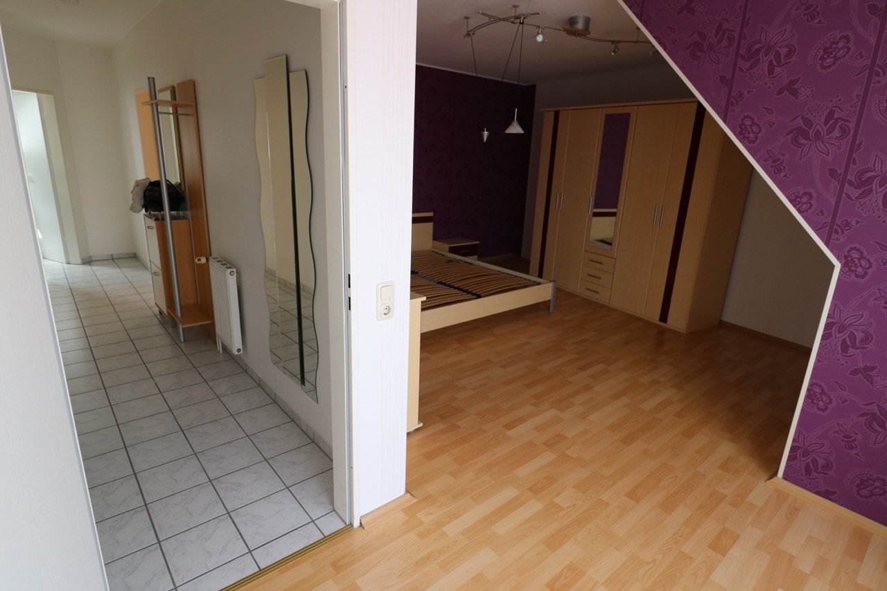 – Wohnzimmer und Schlafzimmer mit Laminatboden