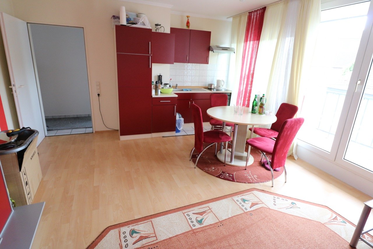 – Wohnzimmer mit offener Küche und ca. 6 m x 1,35 m großen Balkon