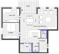 * ansprechender Grundriss mit offenem Wohn-/Küchenbereich